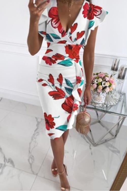 Nonnadress Samantha Fashion Chic V-neck Ruffle Dress