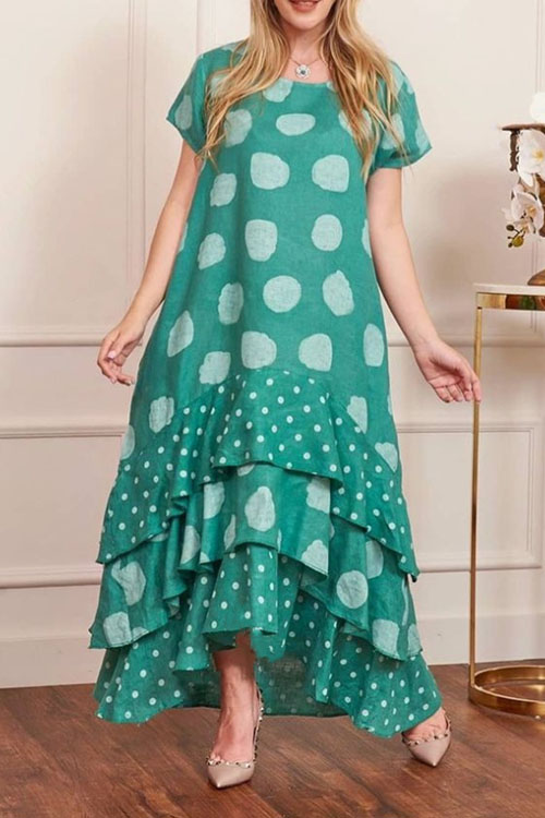 kathiadress large size Short sleeved round neck polka dot large hem long dress