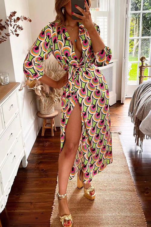 - Printed,V Neck,High Waist,Lace Up