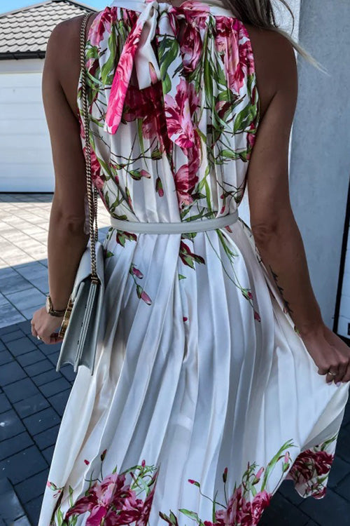 - Printed,Halter,Sleeveless,Lace Up,Loose
