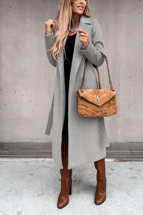 Nonnadress Lapel woolen simple strappy windbreaker coat