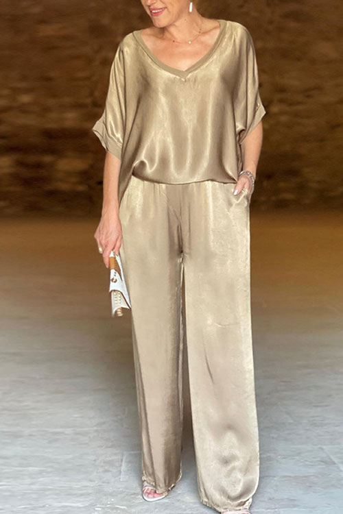 Nonnadress Loose V-neck Casual Top & Wide-leg Pants Set