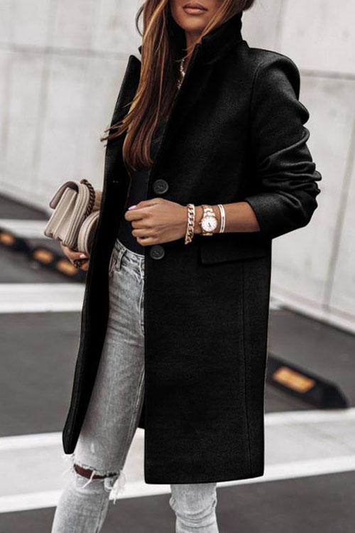 Nonnadress Simple Long-Sleeve Button Wool Coat